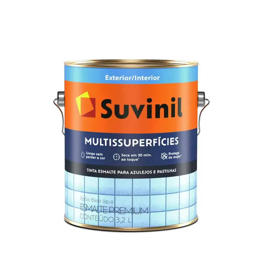 Suvinil Multissuperfícies é a tinta esmalte que renova todo tipo de superfície. É um epóxi base água fácil de aplicar que possui antimofo e ainda possibilita a renovação de azulejos de forma rápida e fácil, sem quebra-quebra. Além de ser fácil de aplicar e ter uma secagem rápida, Suvinil Multissuperfícies resiste a limpeza do dia a dia e tem alta durabillidade.